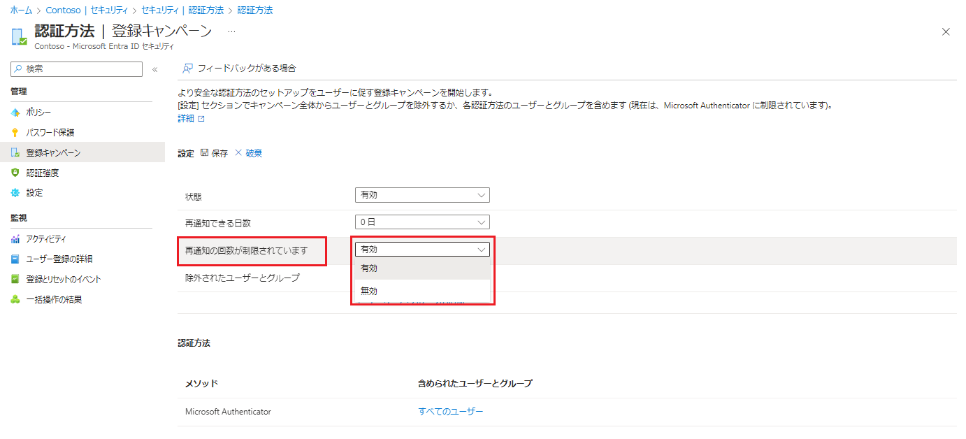 ユーザーが先進的で強力な認証方法として Microsoft Authenticator アプリを設定できるようにするため、登録キャンペーンの既定の有効化が行われました。